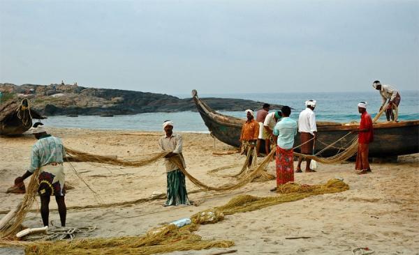 Ковалам – всего лишь небольшая прибрежная индийская деревня, где волны плещутся о песчаные берега, повсюду разбросаны кокосовые рощи, а местные рыбаки уже не одно столетие вытаскивают сети, полные омаров, креветок, кальмаров, за счет чего и живут.