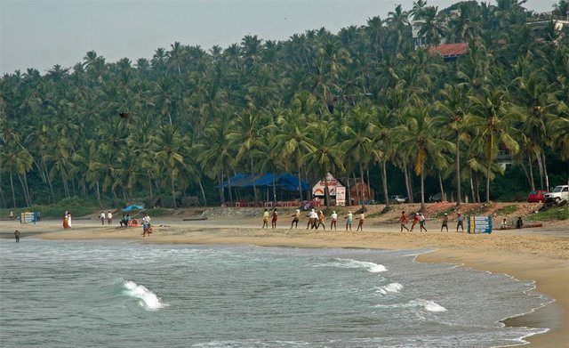Ковалам на местном наречии значит «кокосовая роща», и название вполне подходящее. Вдоль берега повсюду виднеются кокосовые деревья.