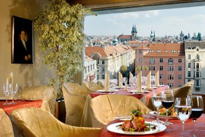 Этот скандально известный ресторан расположен на последнем этаже «Танцующего здания», одного из наиболее неоднозначных архитектурных ансамблей уходящего десятилетия. Самые популярные блюда – рыба «Св.Пётр» в соусе из шампанского и утиная грудка в соусе из портвейна. Стойка с божественно вкусными десертами соблазняет шоколадными и фруктовыми тортами. Приятно насладится вкусом кофе или коньяка на террасе, расположенной на крыше, и затаить дыхание от умопомрачительного вида на замок. Мишлен назвал его «самым лучшим французским рестораном в Праге».