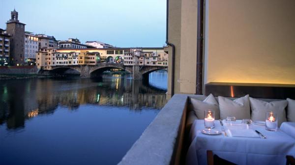 Очень красивый ресторан, расположенный во флорентийском палаццо XV века в бурлящем центре города. Летом блюда подаются в тихом внутреннем дворике, также есть несколько залов с очаровательным интерьером. Винный погреб насчитывает около 150 тысяч бутылок вина – не только лучшая, но и, скорее всего, самая большая коллекция в Италии. Попробуйте здесь чудесные блюда: сибас в соленой корочке с томатами, оливковый соус и икру кефали с жареным баклажаном, начиненным моцареллой. Есть меню с традиционными тосканскими блюдами.